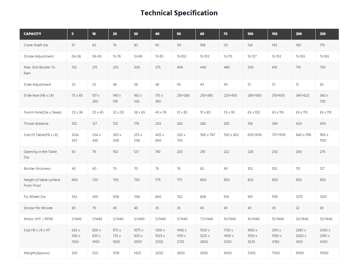 Furthermore, we provide the offered C Type Power Press in various specifications as per the varied requirements of our client.